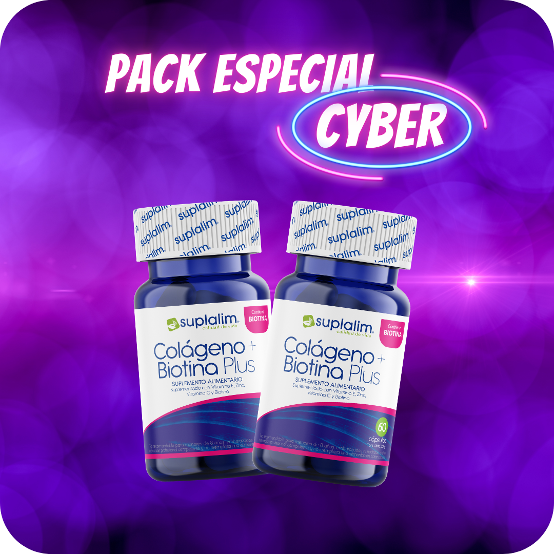 ✨ ¡Oferta exclusiva Cyber! Lleva 2 frascos de Colágeno + Biotina Plus (60 cápsulas c/u) y potencia la salud de tu piel, fortalece tu cabello y uñas, mientras cuidas tus articulaciones. Solo por tiempo limitado, aprovecha este pack con descuento especial 🚀