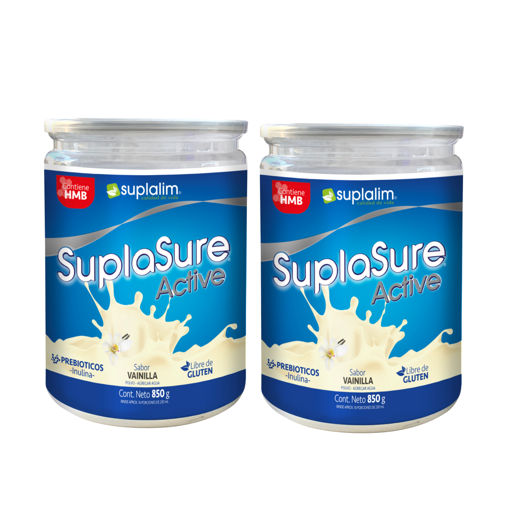 Alimento Nutritivo -SUPLASURE ACTIVE VAINILLA CON HMB- 850 g Suplalim® Nutrición completa y balanceada / Excelente fuente de calcio / Libre de gluten / Sabor vainilla.